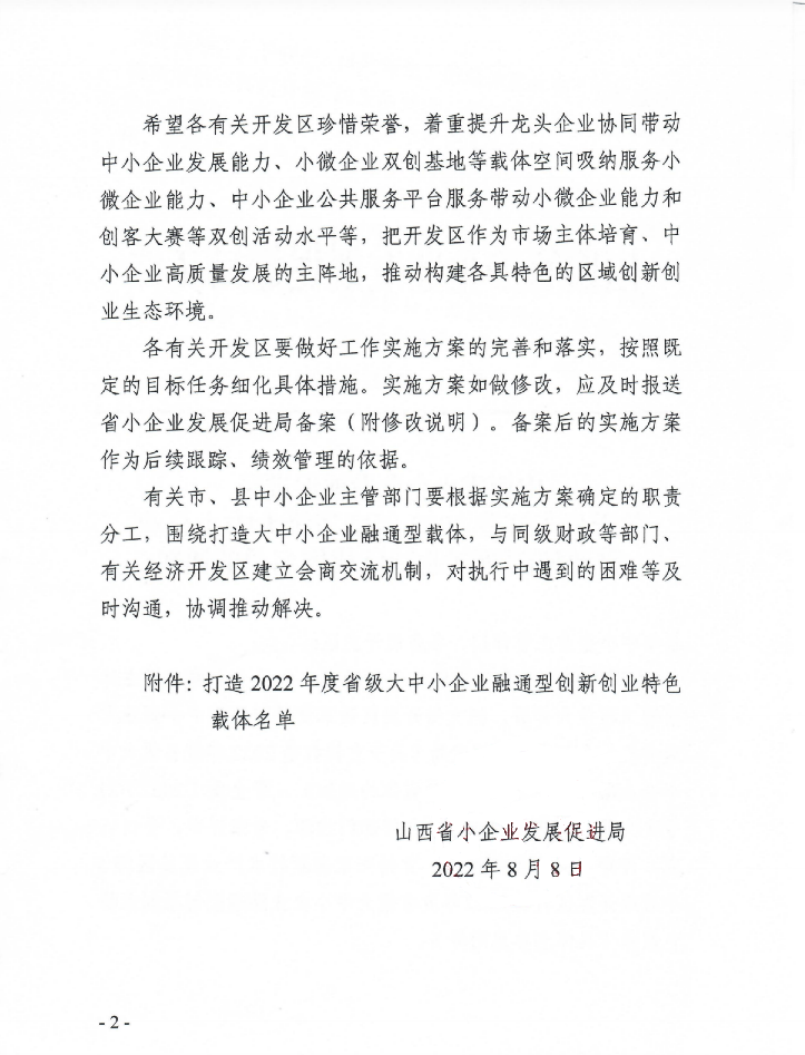 关于公布打造2022年度省级中小企业融通型创新创业特色载体名单的通知