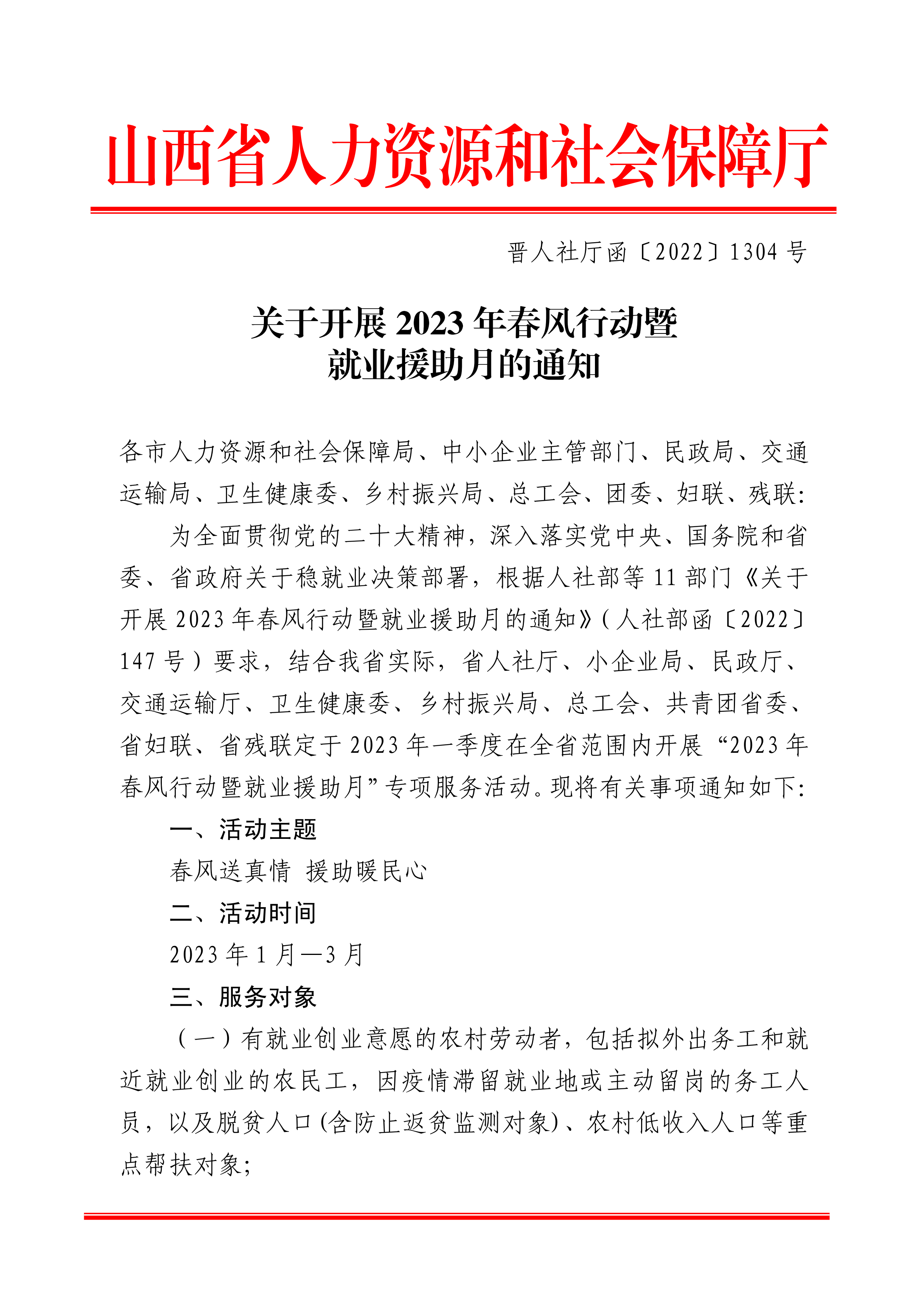 2023年春风行动暨就业援助月的通知