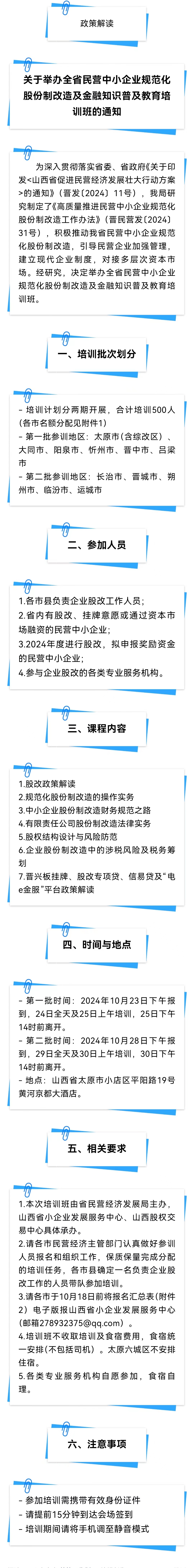 关于举办全省民营中小企业规范化股份制改造及金融知识普及教育培训班的通知的解读